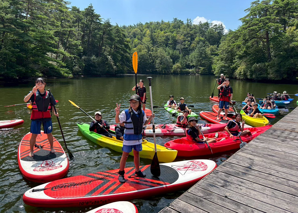当日は、南丹市スポーツ少年団 中村裕予本部長の先導により、カヤック体験や、バーベキュー、バギー体験、レクリエーションを行いました。グループに分かれリーダーシップ、チームワークを学び、普段では中々体験することのできないカヤックやバギーを、仲間とともに大自然の中でお愉しみいただきました。